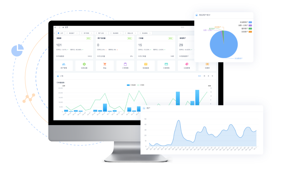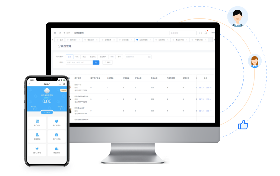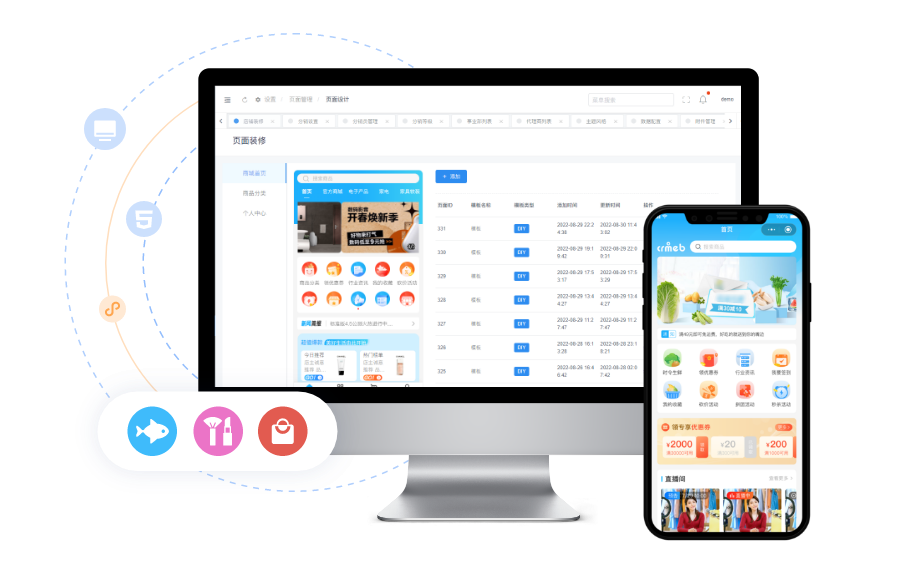 帮助中小型企业快速实现线上电商系统搭建,以社交电商为核心,借助系统完善的营销体系、分销体系拓展线上销售业务